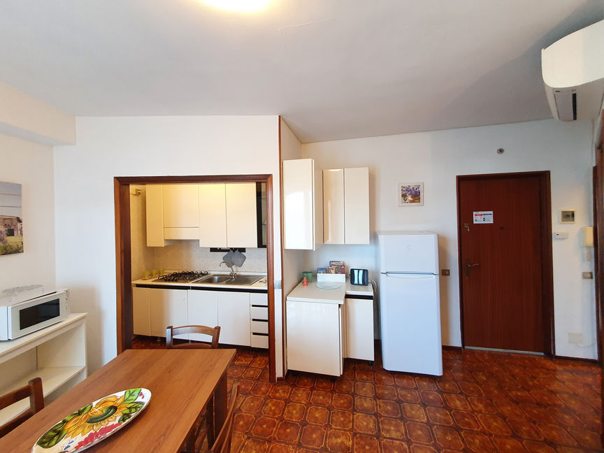 Appartamento con soggiorno e angolo cottura con apertura su ampio balcone. Una camera matrimoniale ed una cameretta singola, entrambe finestrate. Bagno con doccia finestrato e lavatrice. Possibilità di ulteriore posto letto in soggiorno. Parcheggio privato gratuito.